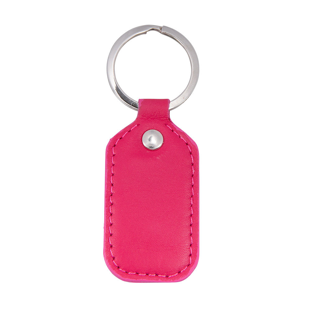 This handmade leather keychain with integrated payment chip is available in various colors.