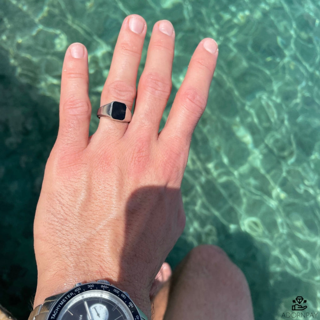 This handmade signet ring made of recycled sterling silver with a black onyx stone is a true favorite. Thanks to the beautiful cutting lines and the perfect onyx stone, this is the ultimate ring. A beautiful, timeless model perfect as a gift.